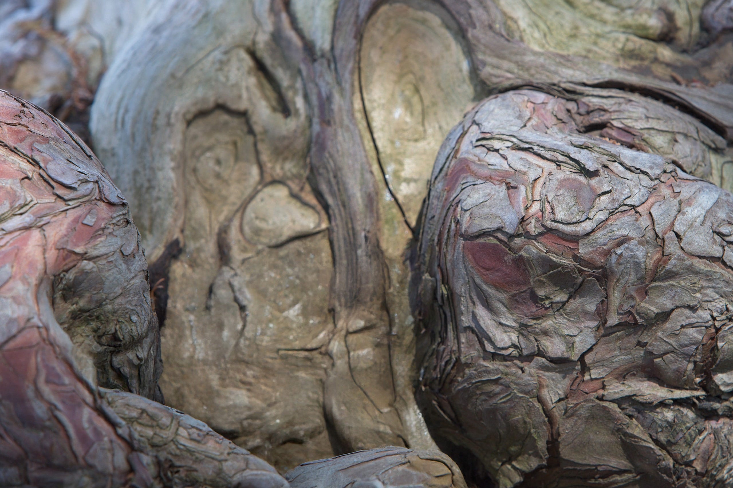 About a year ago, we photographed the tree stump below with the intention of transforming it into an abstract piece. At the time, we weren’t sure whether the image would stand on its own or require additional refinement. By comparing the original photo with the final artwork above, you can see how we preserved the fundamental lines of the stump and bark while blending them with a soft pastel stucco or rock-like texture, textures generated from the original photograph itself.